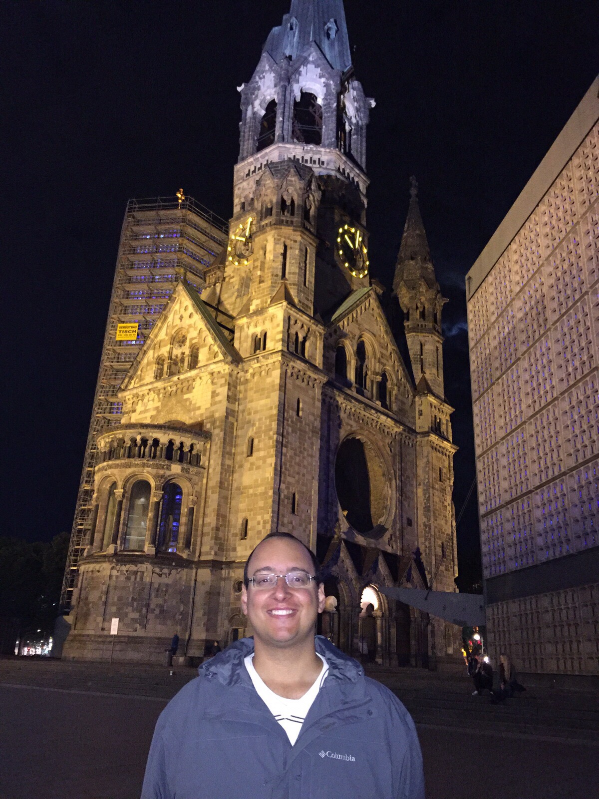 Terminamos a noite passeando pelo bairro, vendo o movimento dos restaurantes asiáticos da Kantonstraße, a loja da Apple no Ku’damm e a igreja Kaiser-Wilhelm. Ela foi alvo de bombardeios em 1943 e se transformou em um memorial. Os berlinenses apelidaram a igreja de dente oco (Hohle Zahn).
