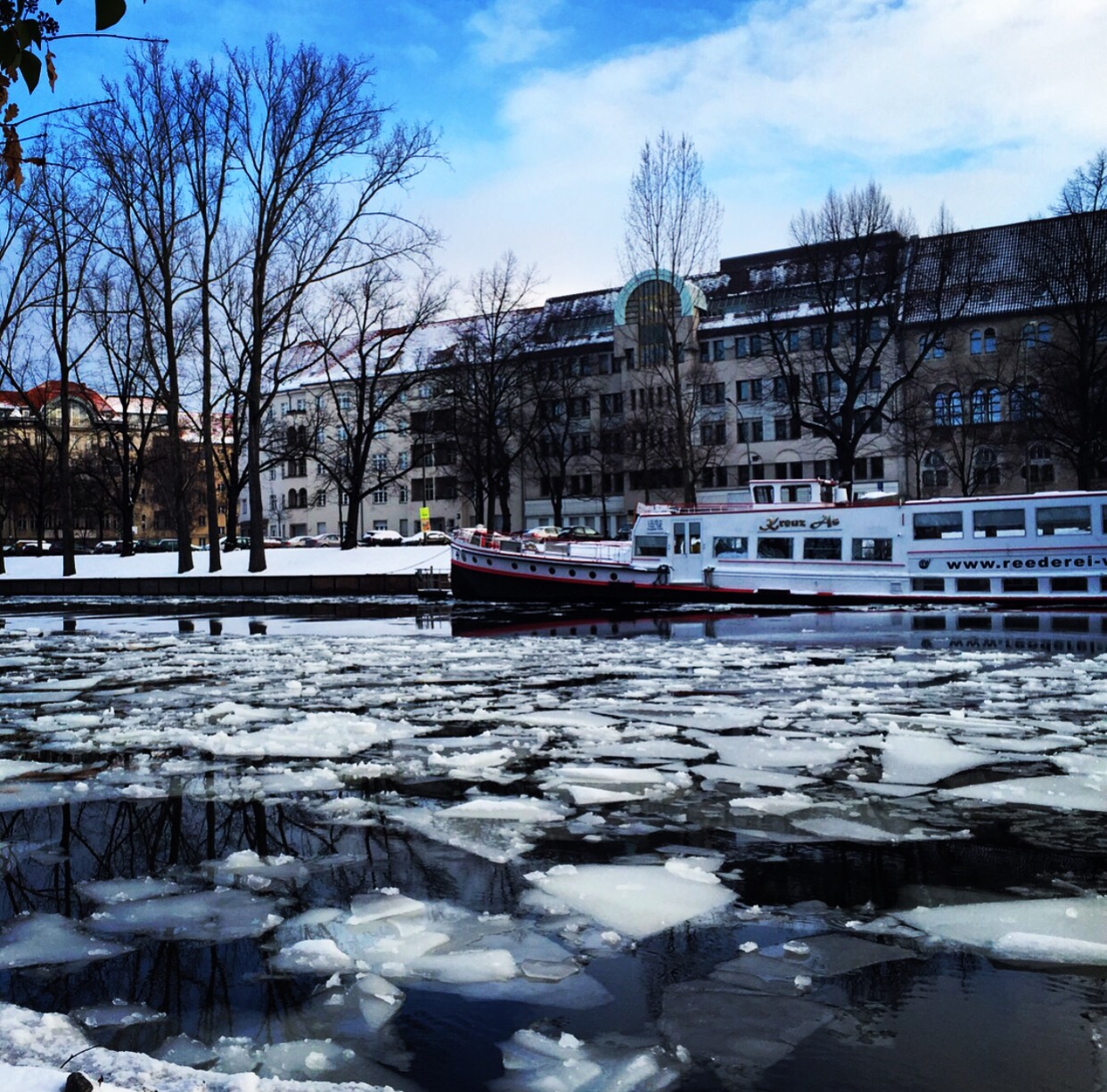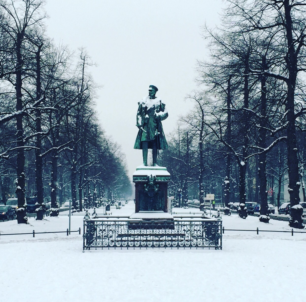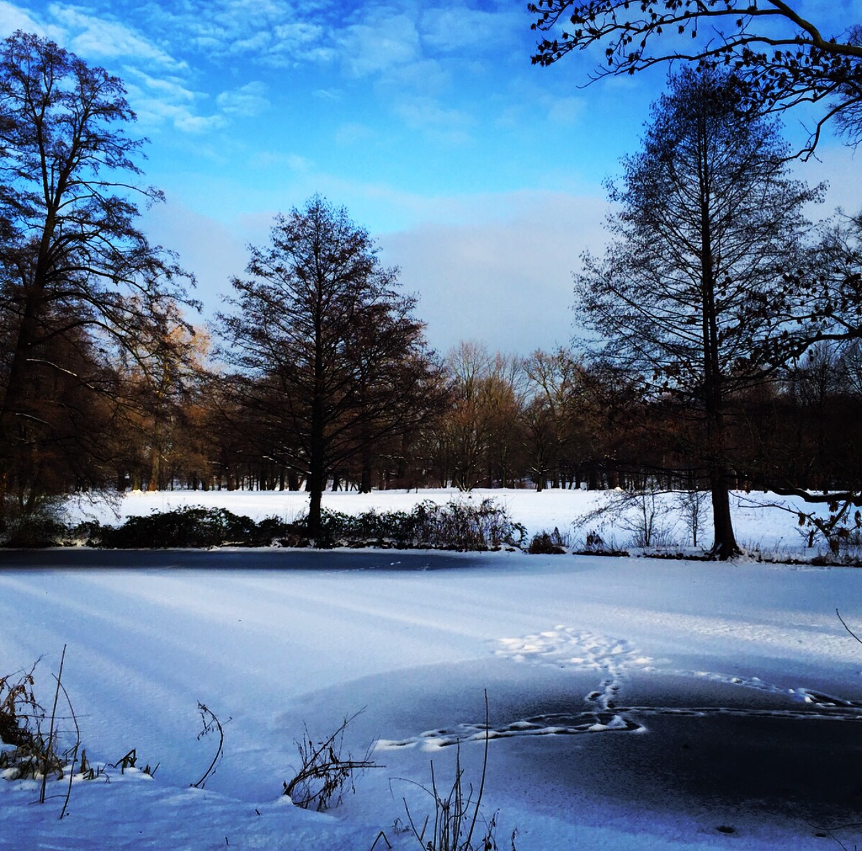 Com a temperatura acima de 0º grau está difícil de fazer caminhadas no parque. A neve se transformou em gelo e o chão está muito escorregadio. A solução foi fazer a caminhada pelas calçadas da rua. Elas são limpas por uma máquina que retira a neve e enche a rua de pedrinhas de sal.