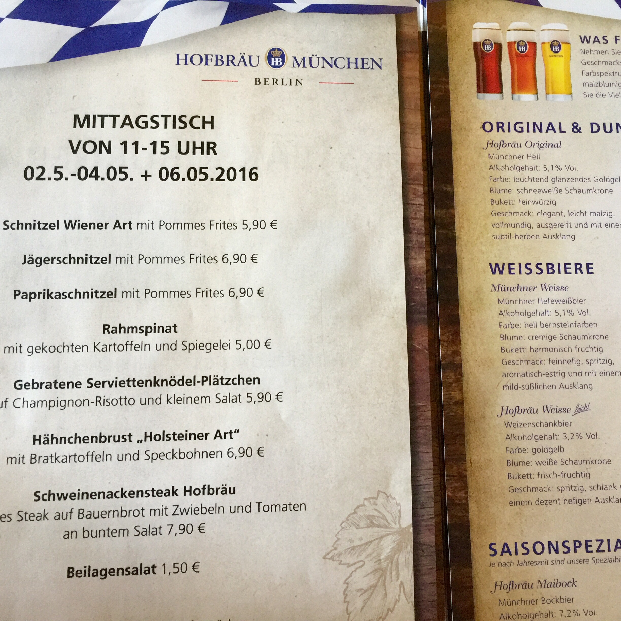 Cardápio da Hofbräu.