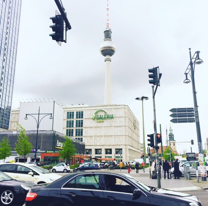 Galeria Kaufhof com a Torre de TV de Berlim ao fundo.