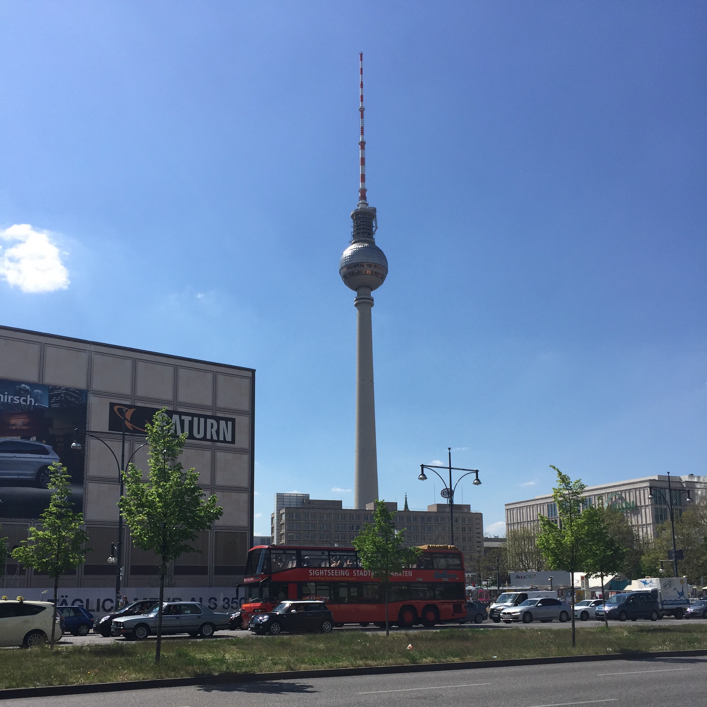 Hoje fomos passear pela cidade. A temperatura está em 24 graus com muito sol. Começamos com uma caminhada no parque e depois fomos até o Ku’damm. Comemos um burrito na Dolores e fomos para a Alexanderplatz. Passeamos nas lojas e fomos para o Treptower Park. O parque estava lotado de gente pelos gramados, muitos em trajes de banho. Fomos conhecer a Badeschiff, a piscina flutuante dentro do rio Spree (link sobre a piscina na Wikipedia). Voltamos até o Ku’damm, compramos café na loja da Nespresso e voltamos para casa.